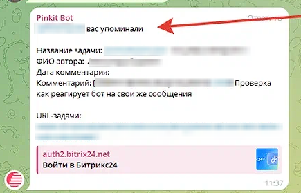 Чтобы убрать хаос в коммуникациях, мы настроили удобную связку через платформу Пинкит, которая автоматически и в реальном времени отправляет комментарии из задач Битрикс24 в Telegram — и возвращает ответы обратно в задачу.