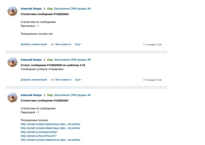Вместо того чтобы просто выводить статусы в живую ленту, настроили передачу всех статусов рассылки в любую сущность CRM — как для обновлений, так и для создания новых данных.