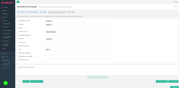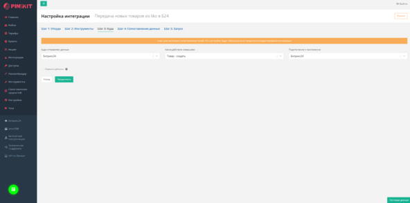 Важно: банкеты начинают синхронизироваться только после того, как в обеих системах настроено соответствие по товарам.