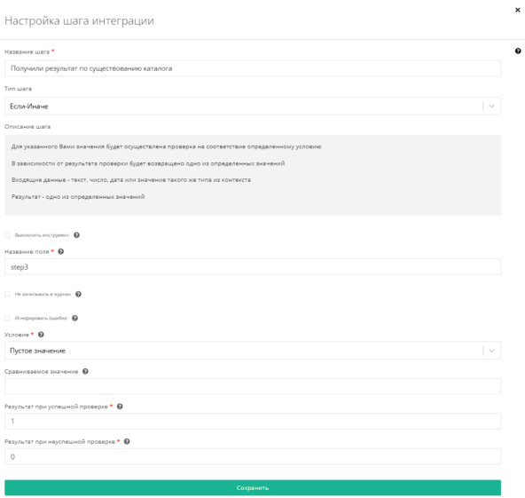 Используем инструмент Если-Иначе в поле step7. Условие - (Число) Равно, Сравниваемое значение = 1, Результат при успешной проверке = {{step4.result.section.id}}, Результат при неуспешной проверке = {{step3}}.