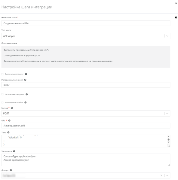 Используем API-запрос методом POST. Условие выполнения - step7. URL = /catalog.section.add.
