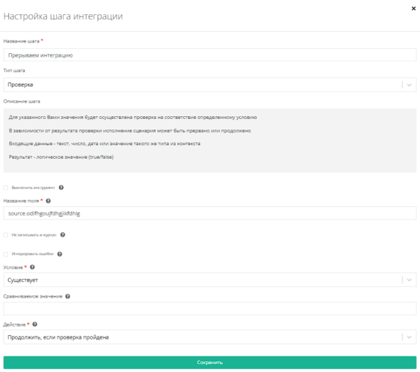 Используем инструмент Проверка в поле source.odifhgoujfdhgjikfdhlg. Условие - Существует, Действие - Продолжить, если проверка пройдена.