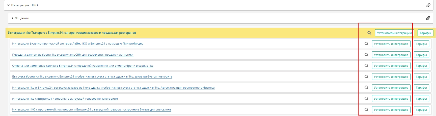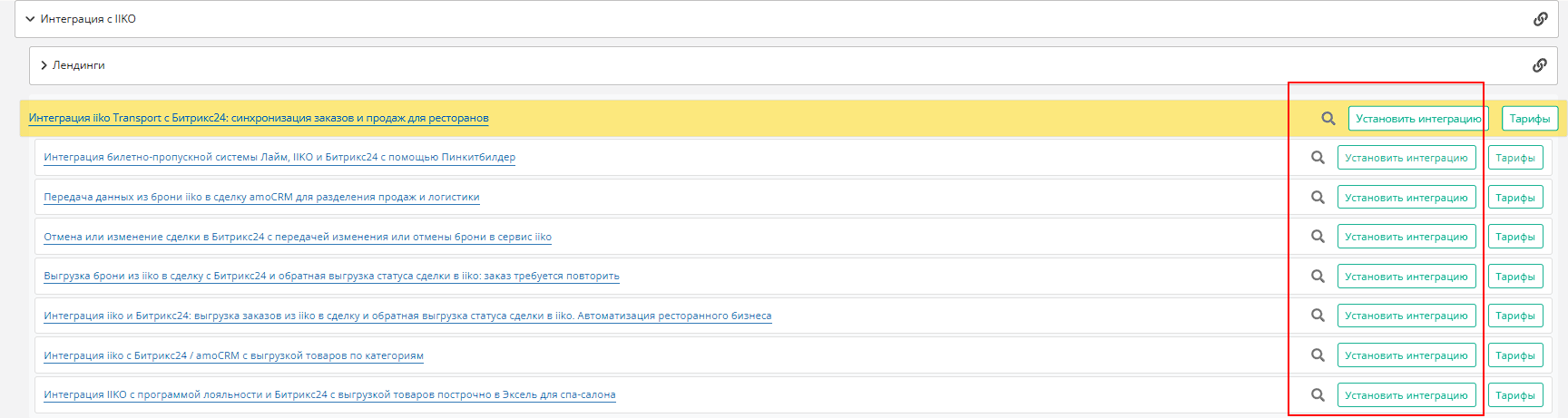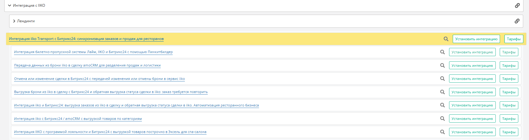 5.Интеграция iiko с Битрикс24 / amoCRM с выгрузкой товаров по категориям