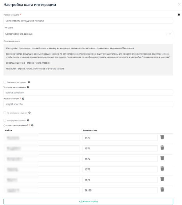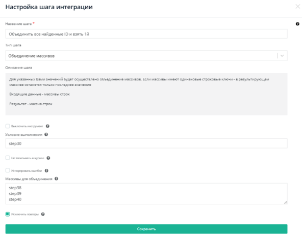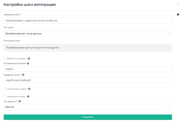 Используем Сопоставление данных в поле step15.0.value. Условие выполнения - step15. Название поля - step15.0.value.