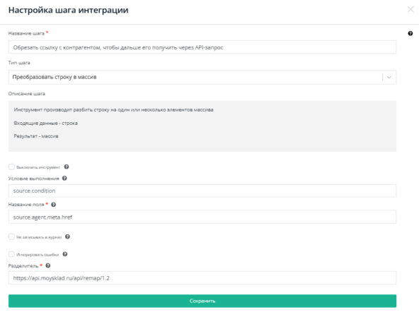 - Обрезать ссылку с контрагентом, чтобы дальше его получить через API-запрос