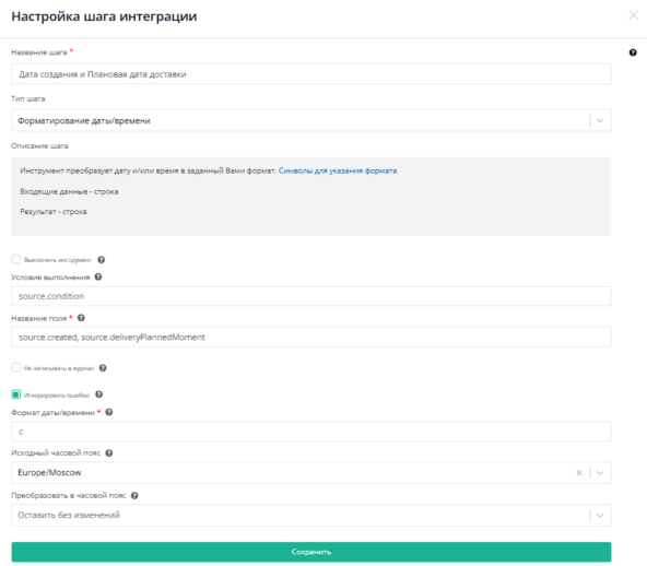 Используем Форматирование даты/времени в поле source.created, source.deliveryPlannedMoment.
