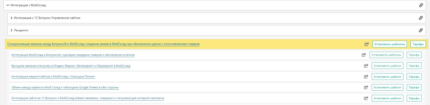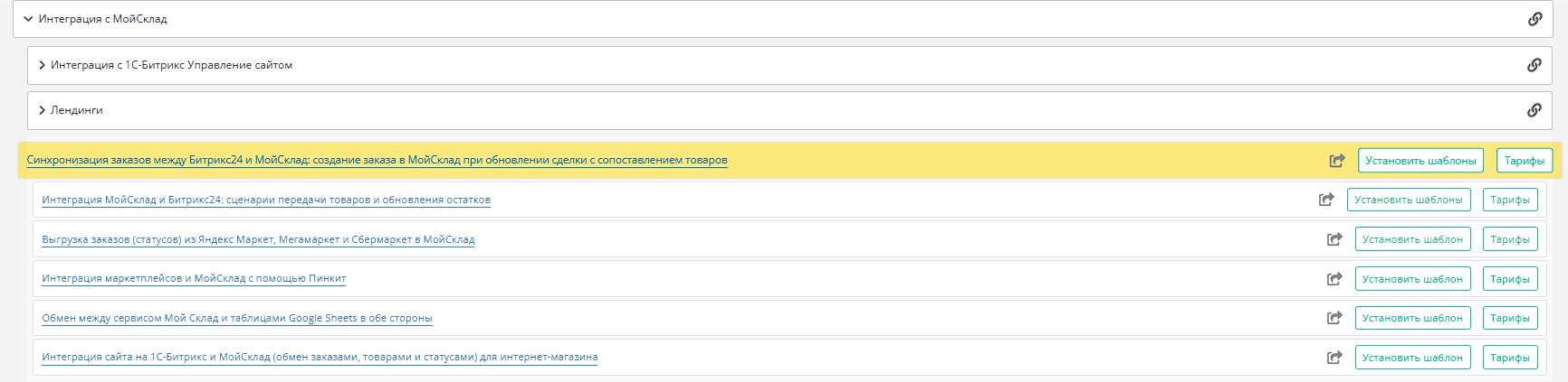 Чтобы вам было легче настроить свою первую интеграцию, мы выложили в Пинкит готовые шаблоны интеграций описанных кейсов.