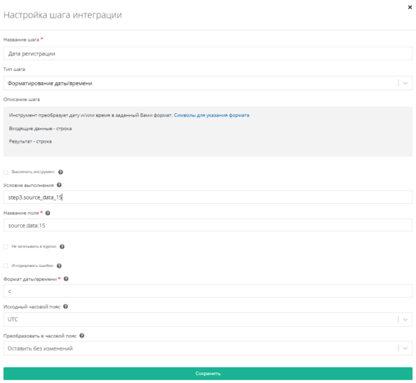 Используем Форматирование даты/времени в поле source.data.15. Условие выполнения - step3.source_data_15.