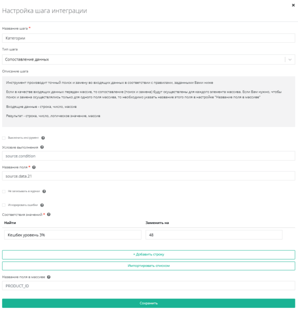 Шаг четвертый: Сопоставление данных