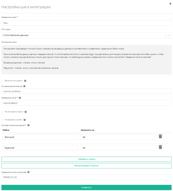 Используем Сопоставление данных в поле source.data.5. Сопоставляем пол: