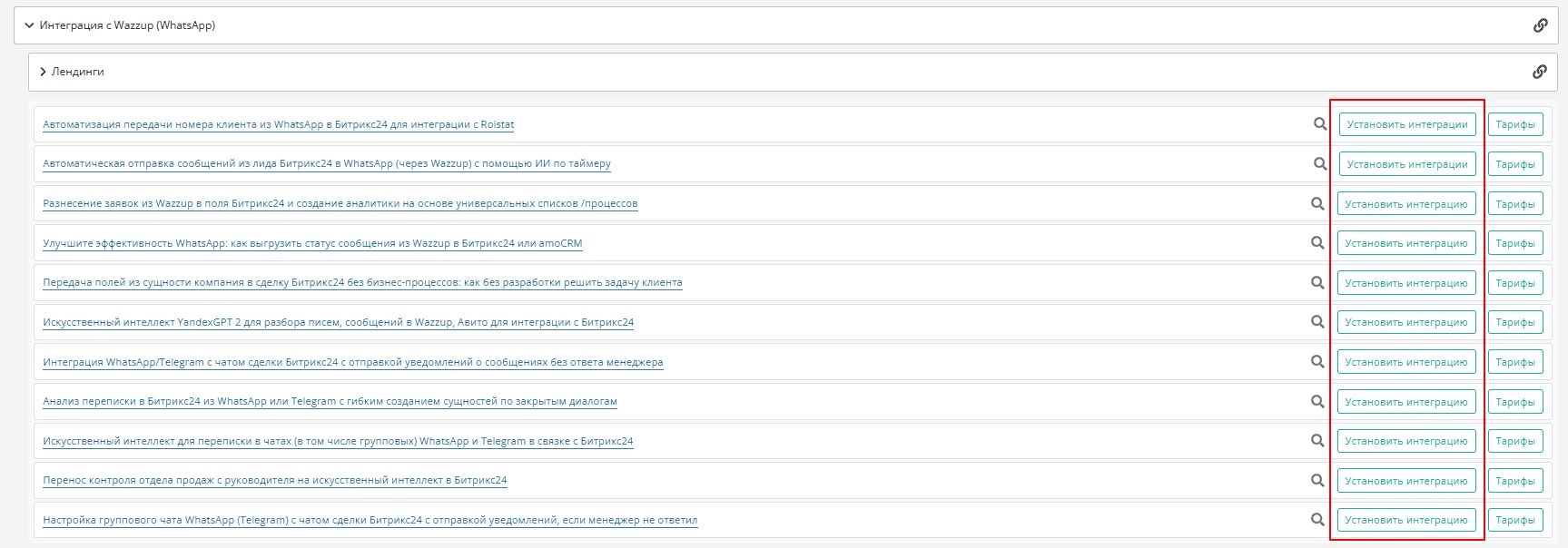 Выбирайте кейс и жмите кнопку "Установить интеграцию":