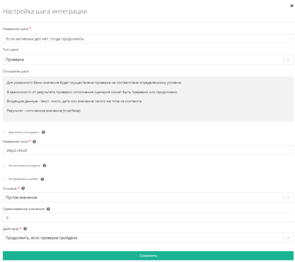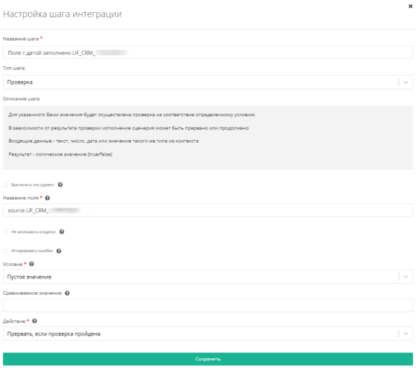 На этом этапе мы задаем, при каких условиях должна запускаться интеграция: