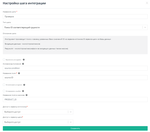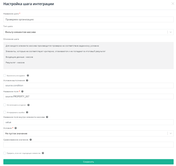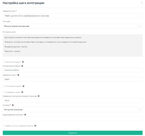 После настройки всех шагов запускаем интеграцию.