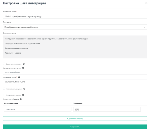 Используем Преобразование массива объектов в поле source.PROPERTY_273.