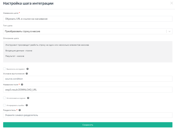 Преобразуем строку в массив в поле step5.result.DOWNLOAD_URL.