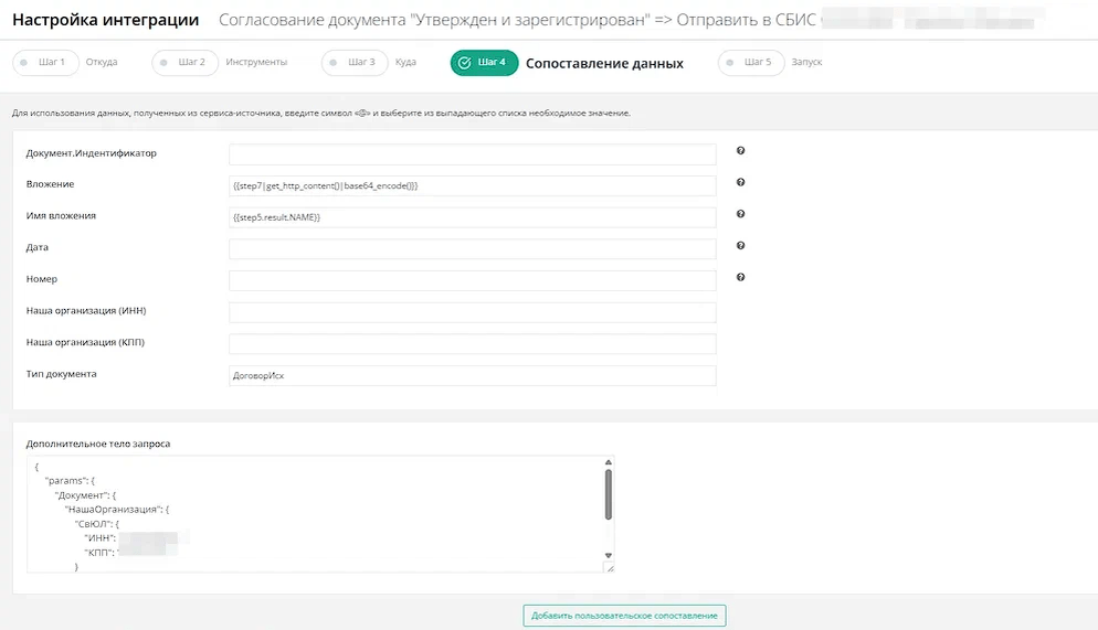 Сопоставление включает соответствие идентификаторов, типов документов и организаций, чтобы данные корректно отображались в Saby Docs.