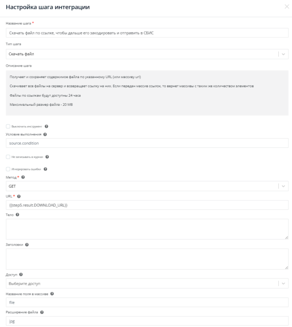 Используем инструмент Скачать файл по ссылке {{step5.result.DOWNLOAD_URL}}.