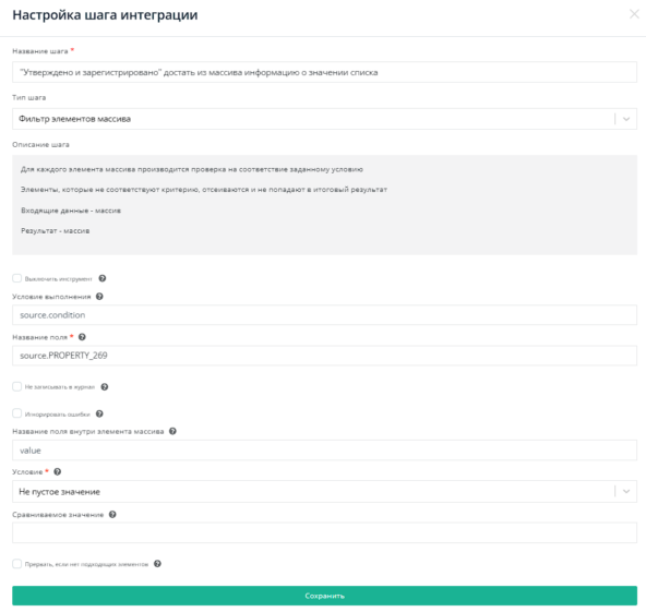 Это обеспечивает запуск интеграции только для завершенных бизнес-процессов, что исключает передачу неподтвержденных документов.