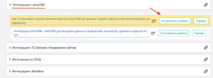 - Перейдите по ссылке на готовый шаблон интеграции и установите его в своем аккаунте.