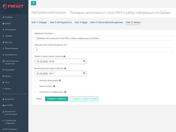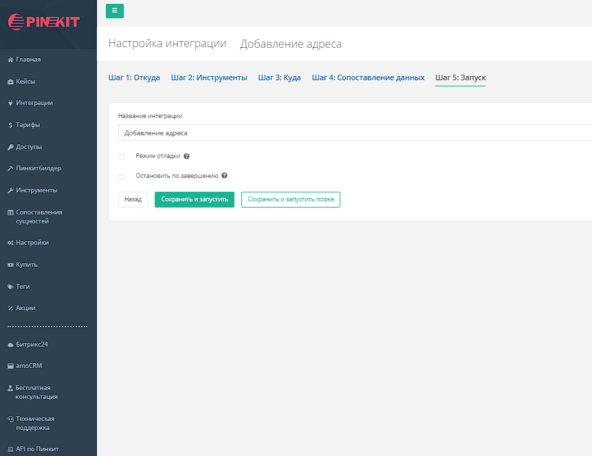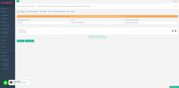 Для реализации такого решения мы использовали платформу Пинкит для настройки интеграции.
