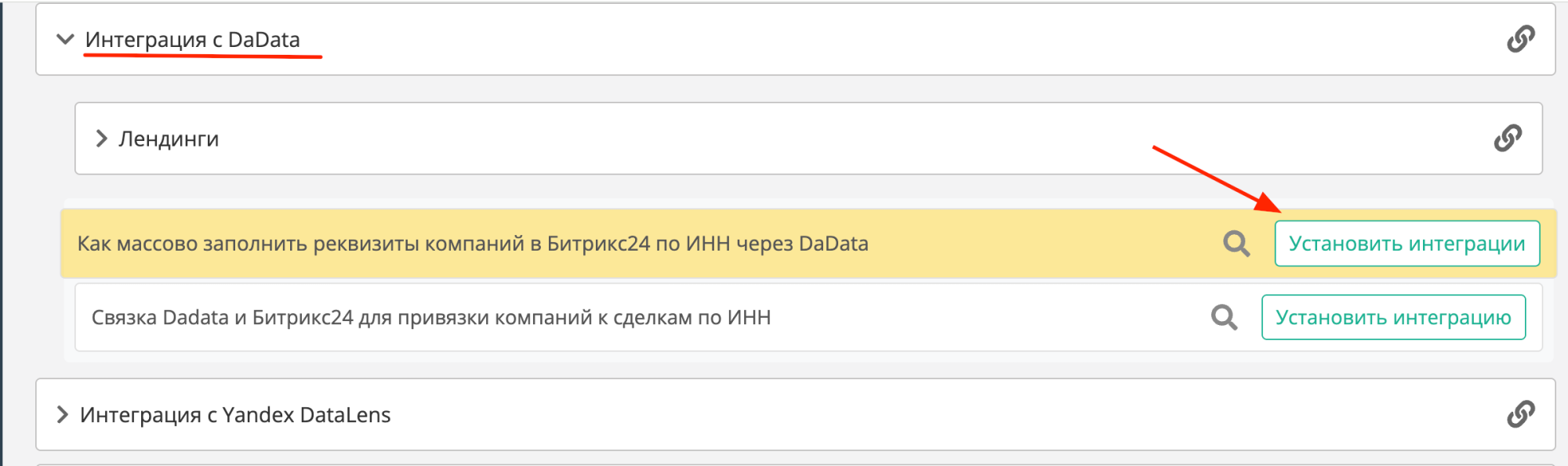 1.3. Добавление актуального адреса. Интеграция получает из DaData актуальный адрес и добавляет его в карточку состветствующей компании в Битрикс24.