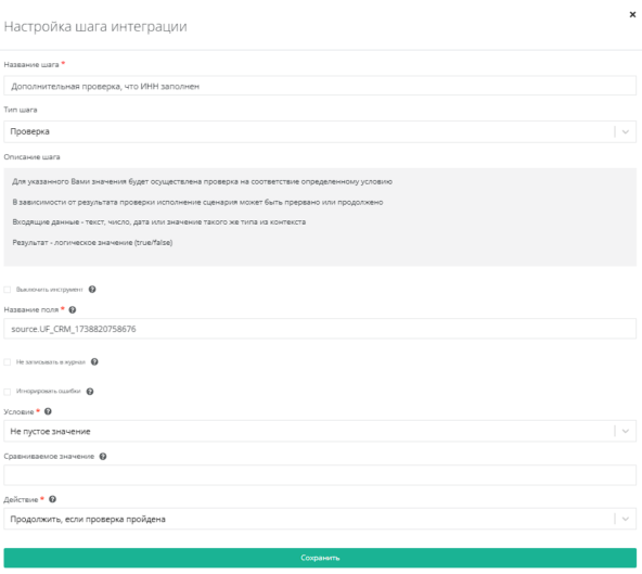 2. Проверка, есть ли ИНН в Битрикс24 и заполнение этого поля данными из DaData