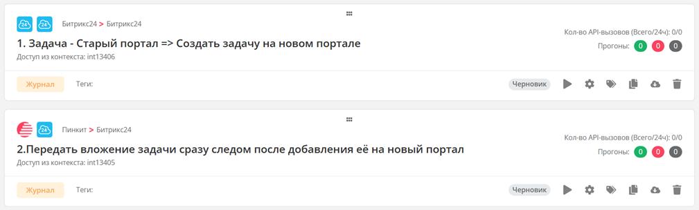Начали с создания пользователей на новом портале, затем настроили две интеграции: