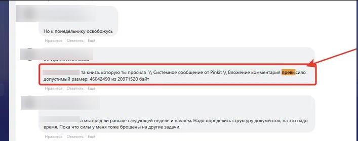 Для файлов объёмом более 20 МБ система автоматически добавляет комментарий с пометкой:«Файл доступен по ссылке [оригинальная ссылка]» и краткую инструкцию по ручной загрузке — чтобы ничего не потерялось и поиск по комментариям оставался доступным.