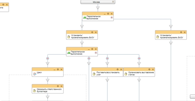 Таким образом, при помощи бизнес-процесса, появляется возможность последовательно собирать и передавать данные от специалиста к специалисту при постановке компании на бухгалтерское обслуживание.