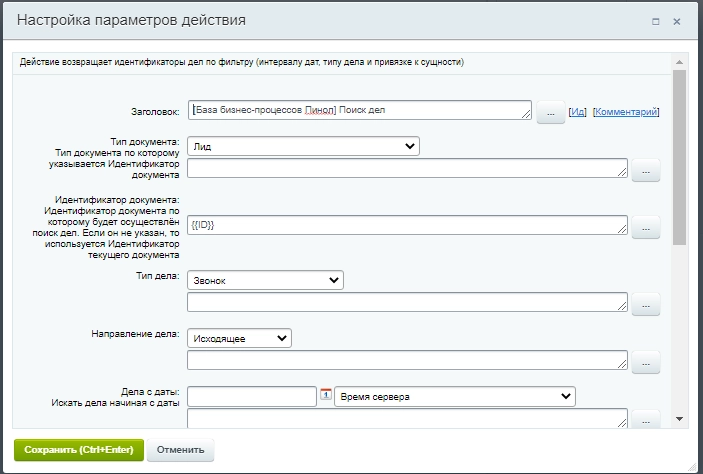 Активити «Поиск дел» - с помощью этого активити находим перечень нужных нам дел и их количество.