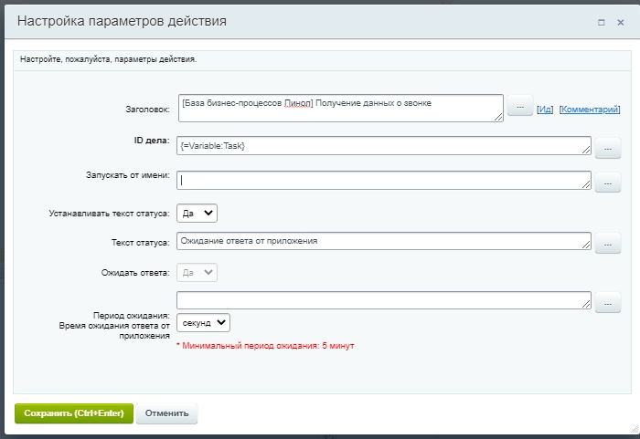 Активити «Запуск бизнес-процесса по Делу» - позволяет запускать бизнес-процесс по сбору аналитики после каждого состоявшегося звонка.