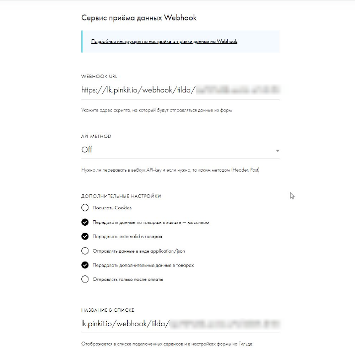 Настроили прием данных по вебхуку из Tilda — теперь заказ сразу поступает в Пинкит, где происходит разбор товарных позиций.
