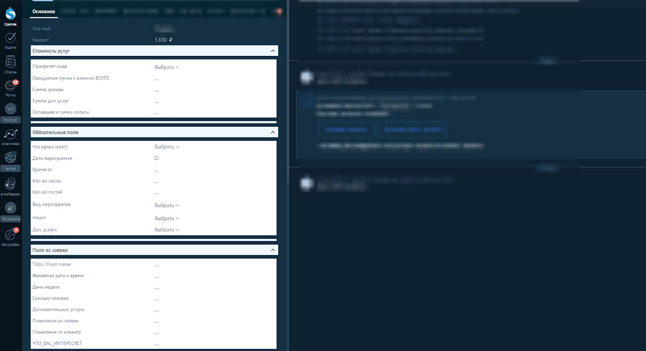 - Заказ с Tilda мгновенно превращается в сделку в amoCRM;