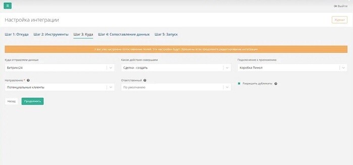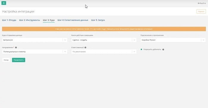Выбираем, откуда поступают данные — указываем портал Битрикс24.