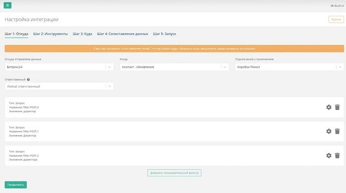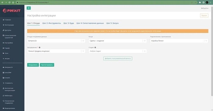 Настроив один раз простую интеграцию через Пинкит, вы будете автоматически получать сделки с нужными контактами в воронке «Потенциальные клиенты».
