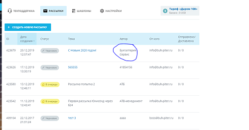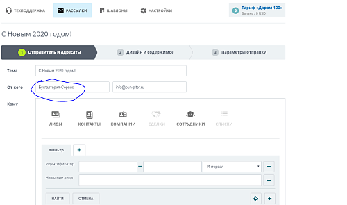 При регистрации указали как имя отправителя "АТБ-менеджмент". Нужно сменить имя, при оформлении рассылки в разделе Отправитель и адресаты, "от кого", указываем нужный.