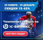 Компания Пинол и 1С-Битрикс объявляют о начале акции «Чемпионат скидок», которая пройдет с 29 ноября по 29 декабря 2017 года. Вас ждут скидки на все продукты «1С-Битрикс» от 15 до 63%! Внимание! С 1 февраля 2018 вырастут цены на Битрикс24. Успей купить Битрикс24 сейчас по акции "Чемпионат скидок".