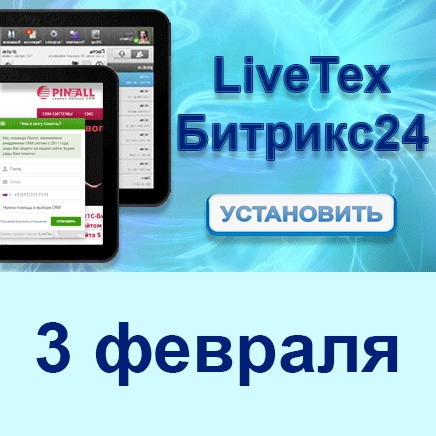 03 февраля в 11:30 (по МСК) приглашаем Вас принять участие в вебинаре "В чем выгода использования интеграции Битрикс24 и Livetex", на котором мы продемонстрируем преимущества использования приложения и принципы его работы.