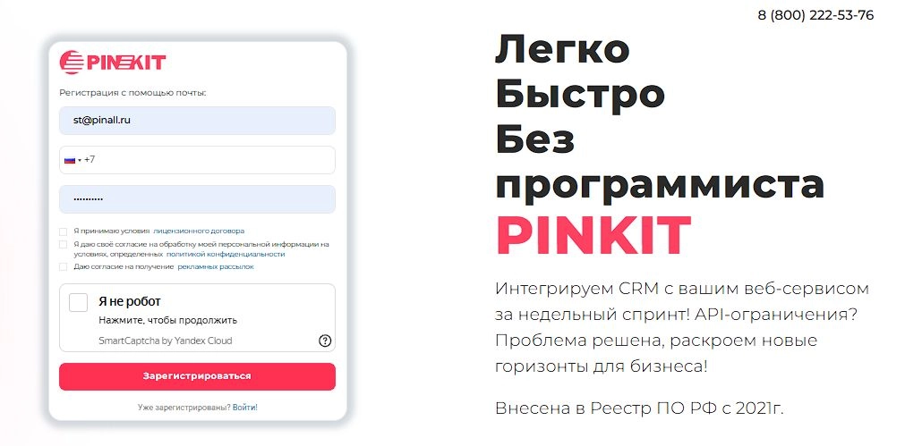 Регистрируйтесь по ссылке: в личном кабинете Пинкит и протестируйте интеграции.