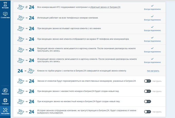 RSSВсе настройки от Гравител с Битрикс24 работают без дополнительных модулей и посредников, обеспечивая максимальное качество и надежность связи.