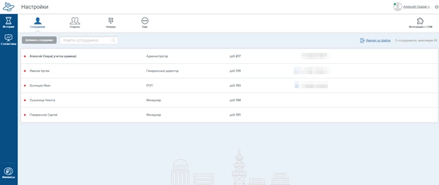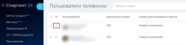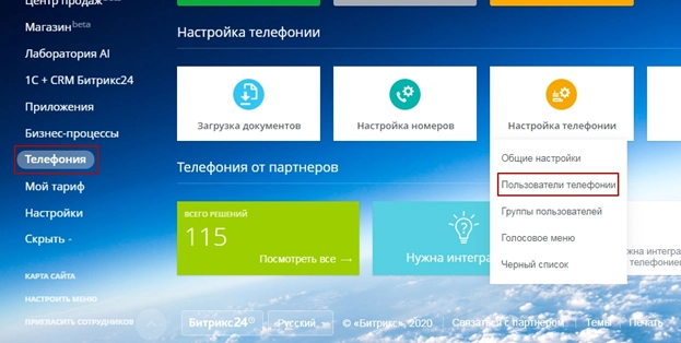 Далее в разделе Телефония - Настройка телефонии - выбираем Пользователи телефонии: