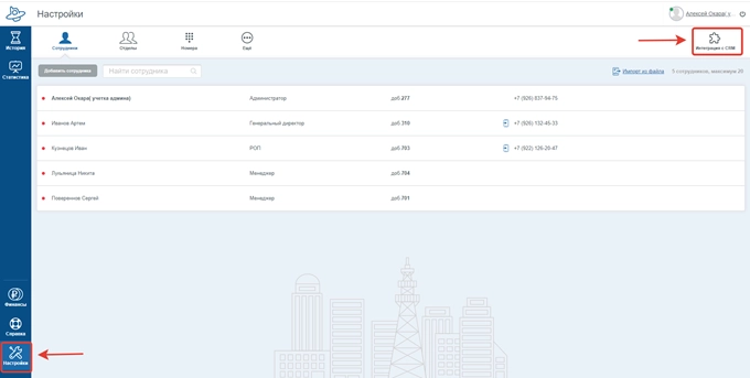 Переходим в раздел “Настройки” – Интеграция с CRM.