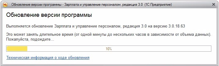 При первом запуске происходит обновление данных базы 1С:
