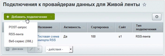 Настройки для выгрузки данных в живую ленту расположены в административной части портала в разделе Сервисы (Сервисы > Внешние источники данных > Публикация в Живую ленту). Всего с порталом может работать неограниченное количество внешних источников.