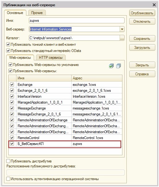 Настройки веб-сервиса 1С