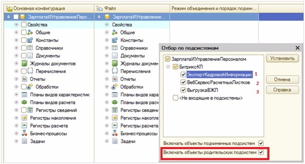 Важно! Обязательно должна быть отмечена опция Включать объекты родительских подсистем.