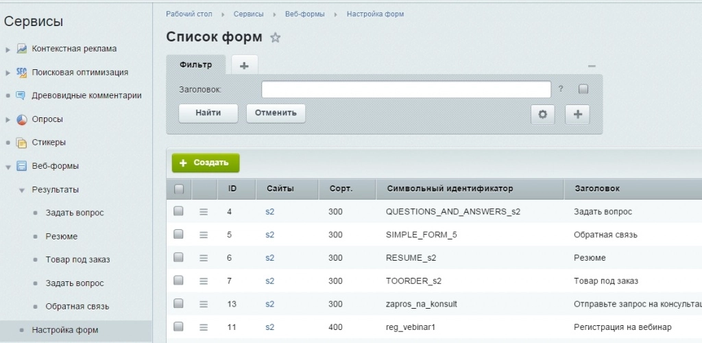 Создавайте на сайте сколько угодно разнообразных веб-форм для обработки, хранения и систематизации полученной информации. Таких, как анкеты, формы регистрации, комментарии посетителей сайта, запросы и другие формы для ввода данных. Обрабатывайте полученные результаты и анализируйте их, используя функционал модуля Статистики.