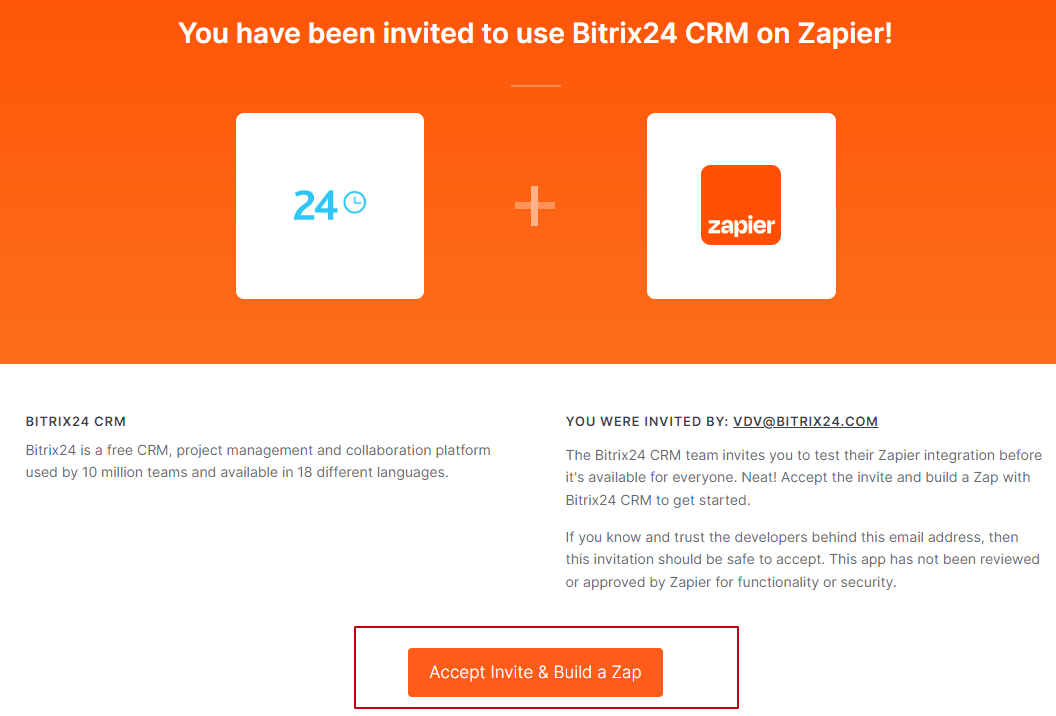 Для этого переходим в Битрикс24.Маркет, находим необходимую интеграцию и после установки следуем по ссылке-инвайту для завершения настройки:
