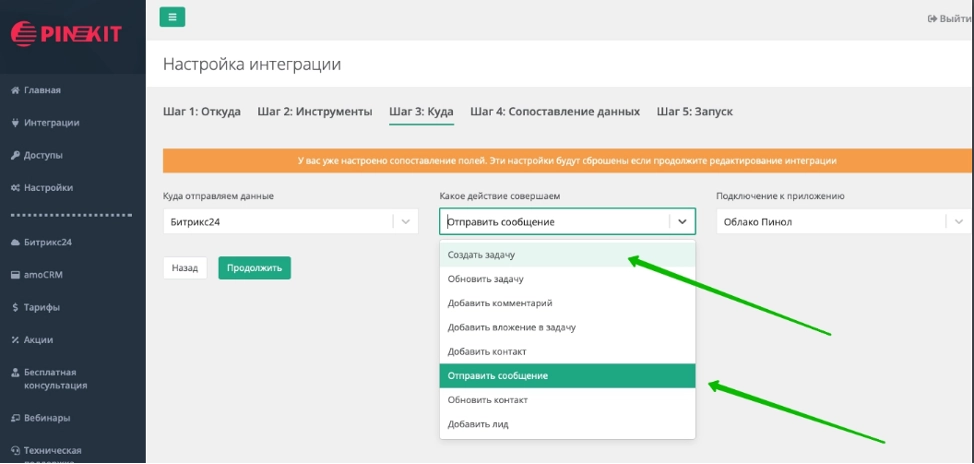 Сервис Пинкит – это незаменимый инструмент для обмена данными между CRM, BPM системами (Битрикс24, Creatio (Terrasoft), amoCRM, Мегаплан) и различными внешними веб-сервисами (UniSender, CallbackHunter, LiveTex). и начать пользоваться им вы можете