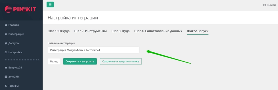 Указываем название интеграции, нажимаем "Сохранить и запустить".
